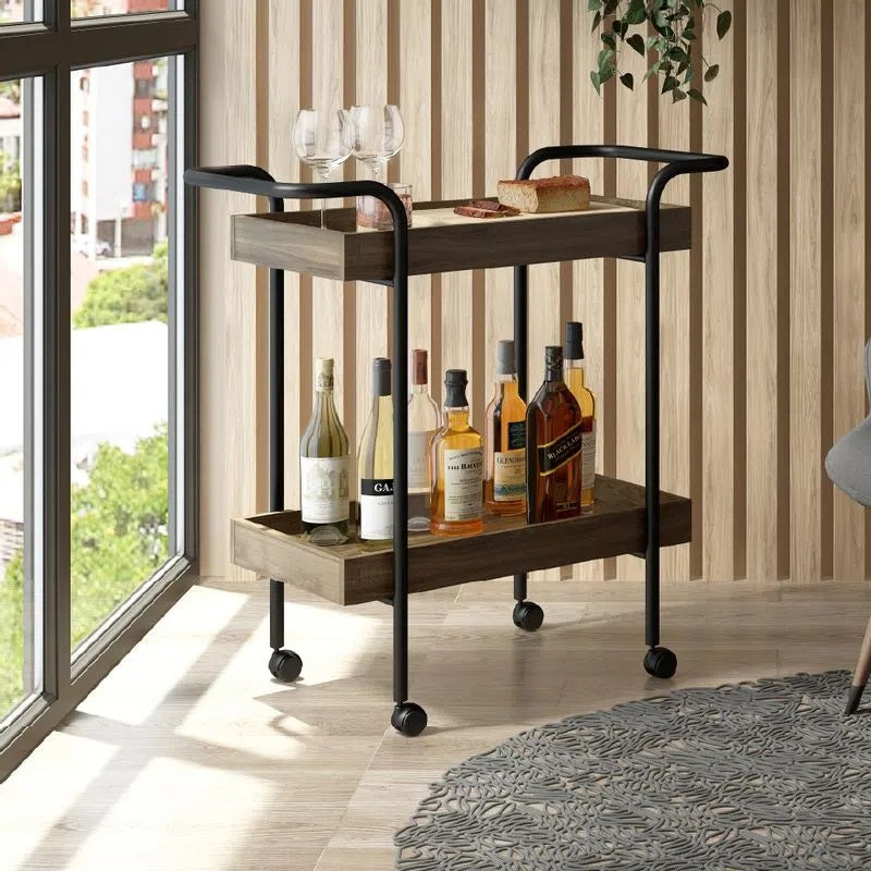 Disfruta de su diseño, practicidad y, sobre todo, combínalo con los demás muebles que tiene para ti. Producto armable. Diseño moderno. Fabricado en Acero y MDP. 4 prácticas ruedas para su transportación. 1 charola en la parte superior; ideal para colocar vasos, botana, platos, etc. 1 charola en la parte inferior; ideal para colocar botellas, hielera y demás aditamentos de tamaño grande. Acabado en pintura UV de alta resistencia, calidad y duración. Garantía válida únicamente por defecto de fábrica.