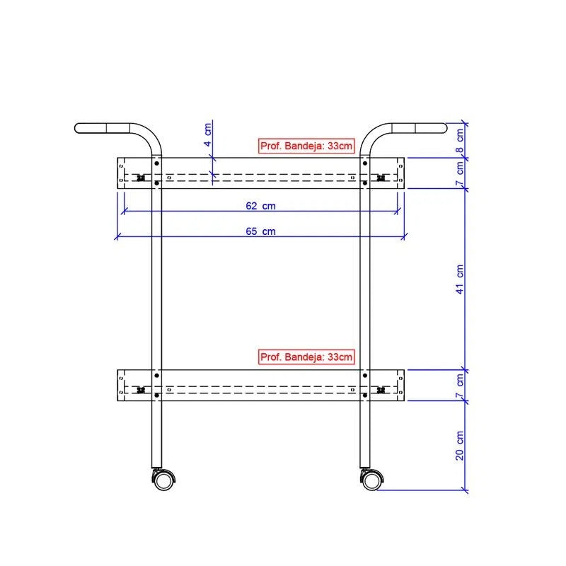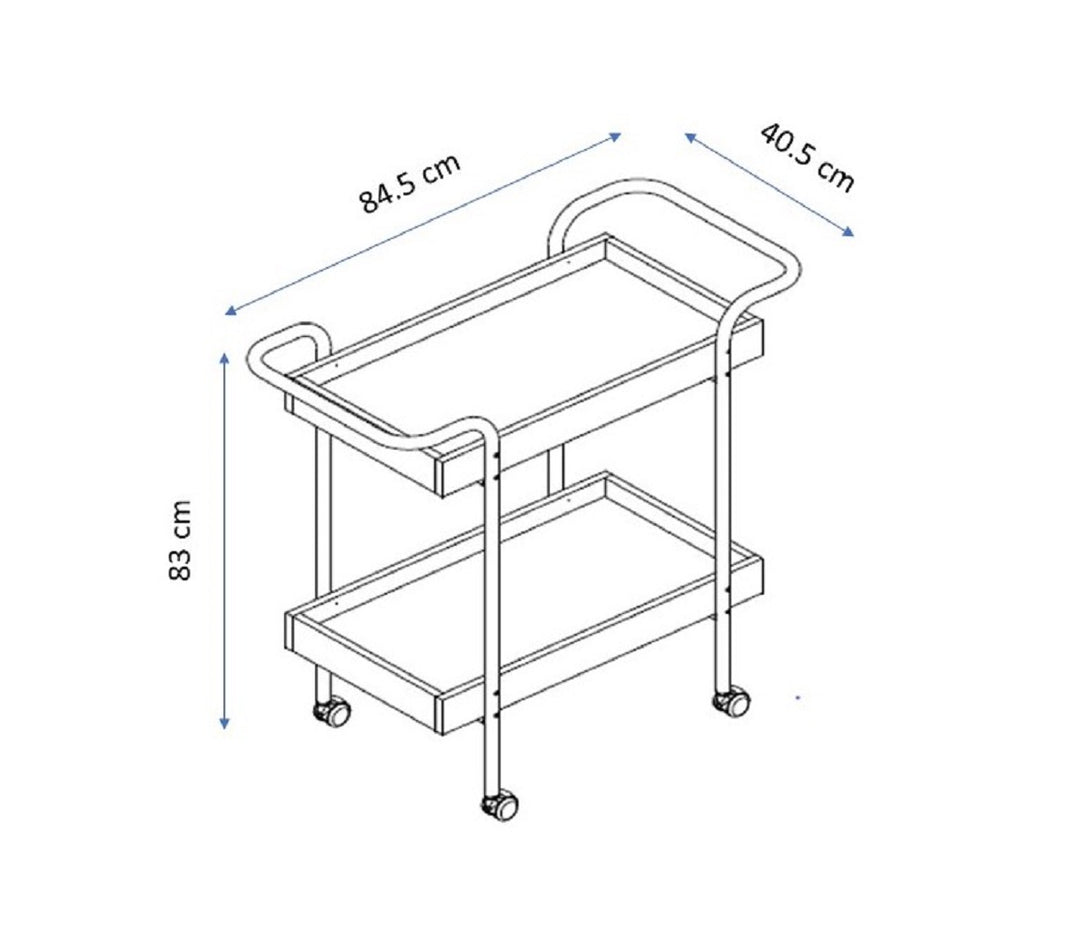 Carro auxiliar modelo: 1284. Este maravilloso carro auxiliar tiene un extraordinario y moderno diseño; está pensado y fabricado para ser tu aliado al momento de consentir a tus invitados y hacerte ver como el mejor anfitrión de ese día. La combinación del MDP en las charolas y el Acero en su estructura, hacen este mueble ligero, pero de gran calidad. Tiene dos prácticas charolas, una en la parte superior; ideal para colocar vasos, botana, platos, etc. Y la segunda en la parte inferior; ideal para colocar botellas, hielera y demás aditamentos de gran tamaño. Tiene un acabado en pintura UV de alta resistencia, calidad y duración, lo cual lo hace un mueble más resistente a los pequeños arañazos y rayaduras del uso diario (no resiste daños graves ocasionados por objetos puntiagudos o punzocortantes)