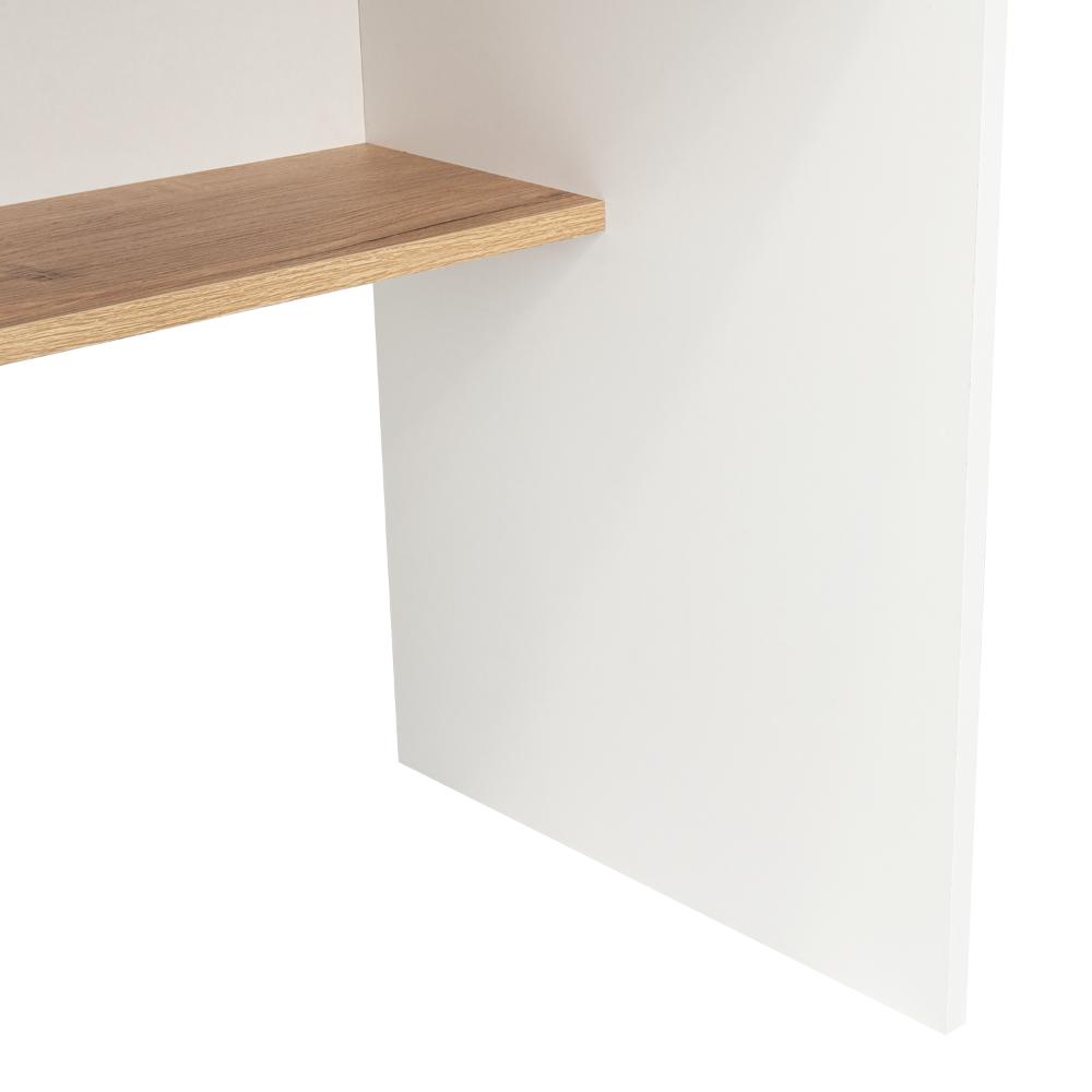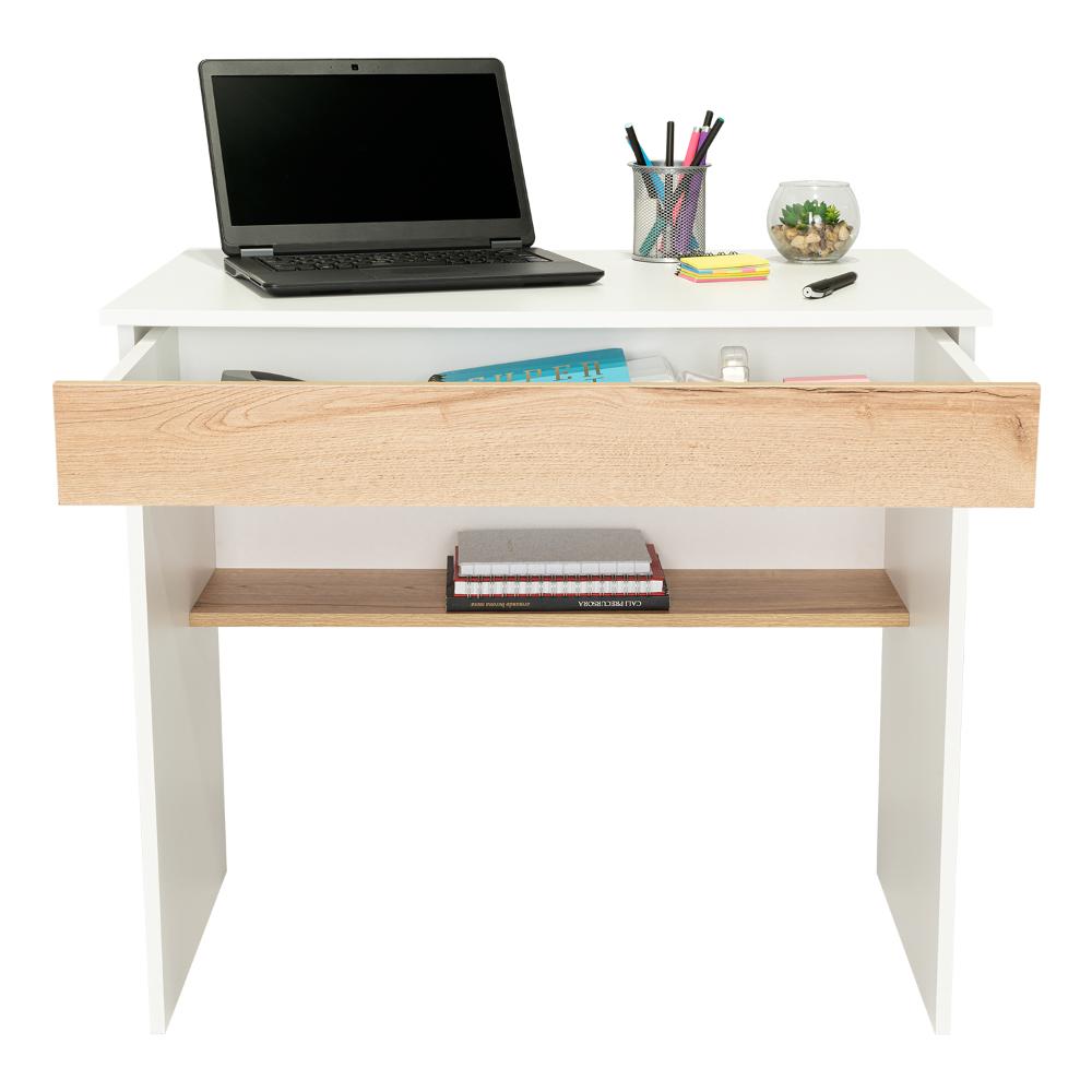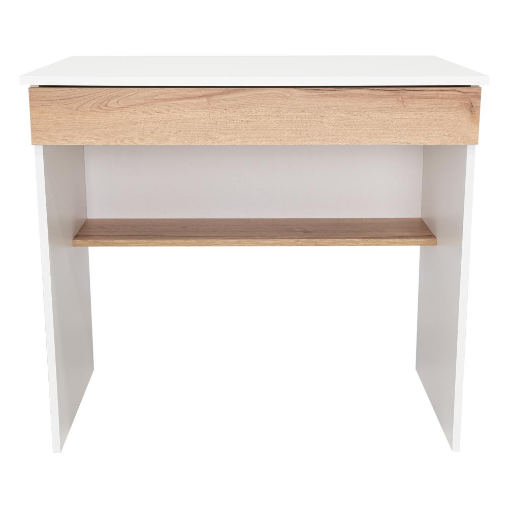 Escritorio con diseño moderno, amplia superficie de trabajo, entrepaño y cajón.