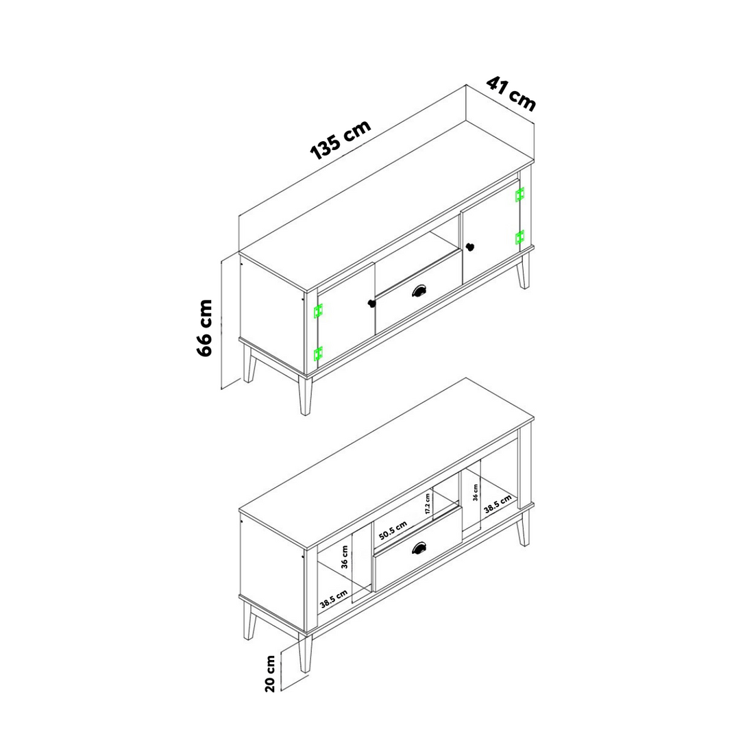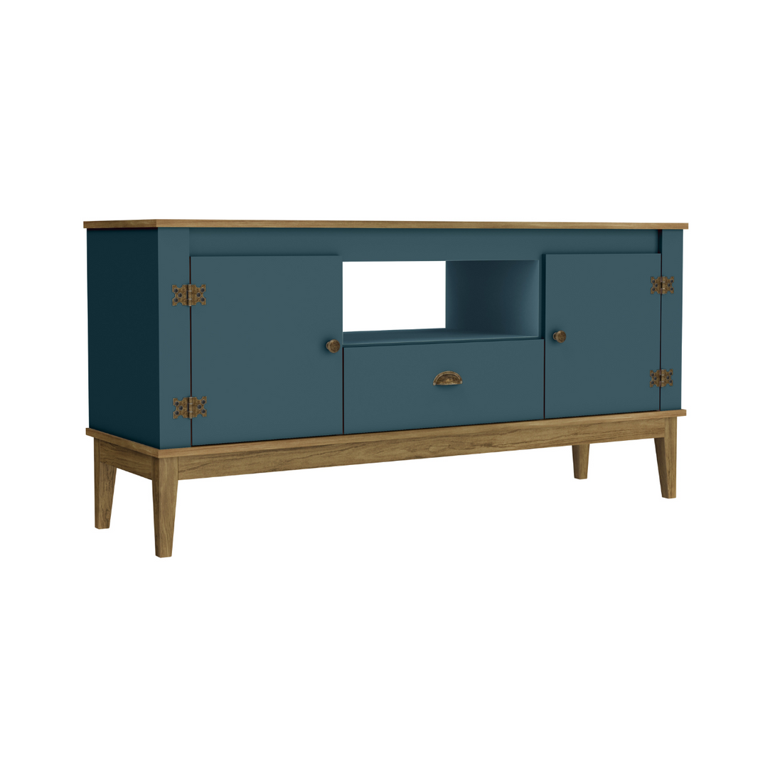 Mesa para TV modelo: MB 1015. Medidas en cm: Alto 66 x Largo 135 x Ancho 41. Esta mesa tiene un diseño vintage que te encantará. Sus patas son de madera maciza lo que garantiza aún más la calidad y resistencia al producto. Tiene dos puertas abatibles con jaladeras tipo zamak un nicho en el centro y debajo del mismo un cajón. Este mueble es un producto completo, contempla belleza, practicidad, calidad y seguridad. Disfruta de su diseño, practicidad y, sobre todo, combínalo con los demás muebles que tiene para ti. Producto armable.