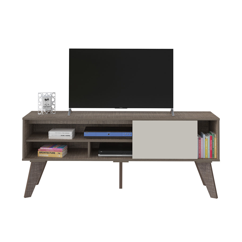 Tiene un acabado en pintura UV texturizada de alta resistencia, calidad y duración, lo cual lo hace un mueble más resistente a los pequeños arañazos y rayaduras del uso diario (no resiste daños graves ocasionados por objetos puntiagudos o punzocortantes) Disfruta de su diseño, practicidad y, sobre todo, combínalo con los demás muebles que tiene para ti. Producto armable. Soporta con seguridad una pantalla de hasta 60 pulgadas. Puerta deslizante con un color diferente en cada cara, puede ser color canela o color off white, elige el color al momento de armar el mueble. 4 patas en recorte moderno. Acabado en pintura uv texturizada. 4 amplios nichos de almacenamiento. Garantía válida únicamente por defecto de fábrica.