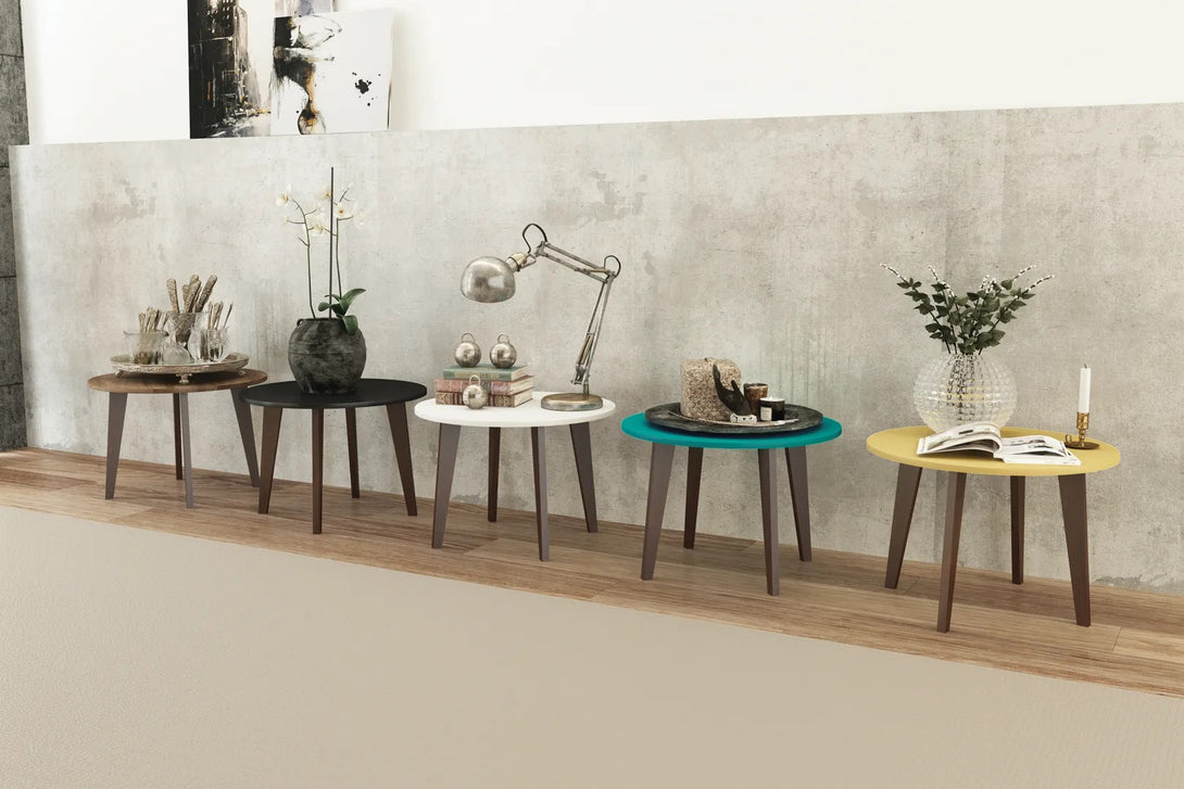 Mesa lateral modelo: RT 3082. Esta mesa lateral está pensada y fabricada para proveer practicidad y un toque de decoración al espacio donde es colocada. La mesa circular es ideal para sostener objetos como: Teléfonos, modems de internet, fotografías, decoraciones, u objetos que se necesiten tener a la mano como controles remotos, llaves, carteras, etc. Además, viene con un ángulo diagonal en las 4 patas del mueble las cuales son altas. Tiene un acabado en pintura UV de larga durabilidad y fácil limpieza. Disfruta de su diseño, practicidad y, sobre todo, combínalo con los demás muebles que tiene para ti. Producto armable. Compacta y decorativa.
