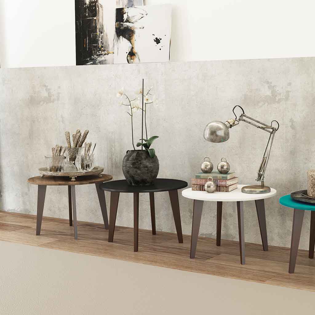 Mesa lateral modelo: RT 3082. Esta mesa lateral está pensada y fabricada para proveer practicidad y un toque de decoración al espacio donde es colocada. La mesa circular es ideal para sostener objetos como: Teléfonos, modems de internet, fotografías, decoraciones, u objetos que se necesiten tener a la mano como controles remotos, llaves, carteras, etc. Además, viene con un ángulo diagonal en las 4 patas del mueble las cuales son altas. Tiene un acabado en pintura UV de larga durabilidad y fácil limpieza. Disfruta de su diseño, practicidad y, sobre todo, combínalo con los demás muebles que tiene para ti. Producto armable. Compacta y decorativa.
