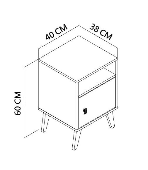 Estructura resistente de MDP 15 mm. 1 nicho superior de almacenamiento. 1 nicho inferior con puerta abatible y jaladera rectangular ABS. 4 patas de plástico. Acabado en pintura UV texturizada, de larga durabilidad y fácil limpieza. Garantía válida únicamente por defecto de fábrica.