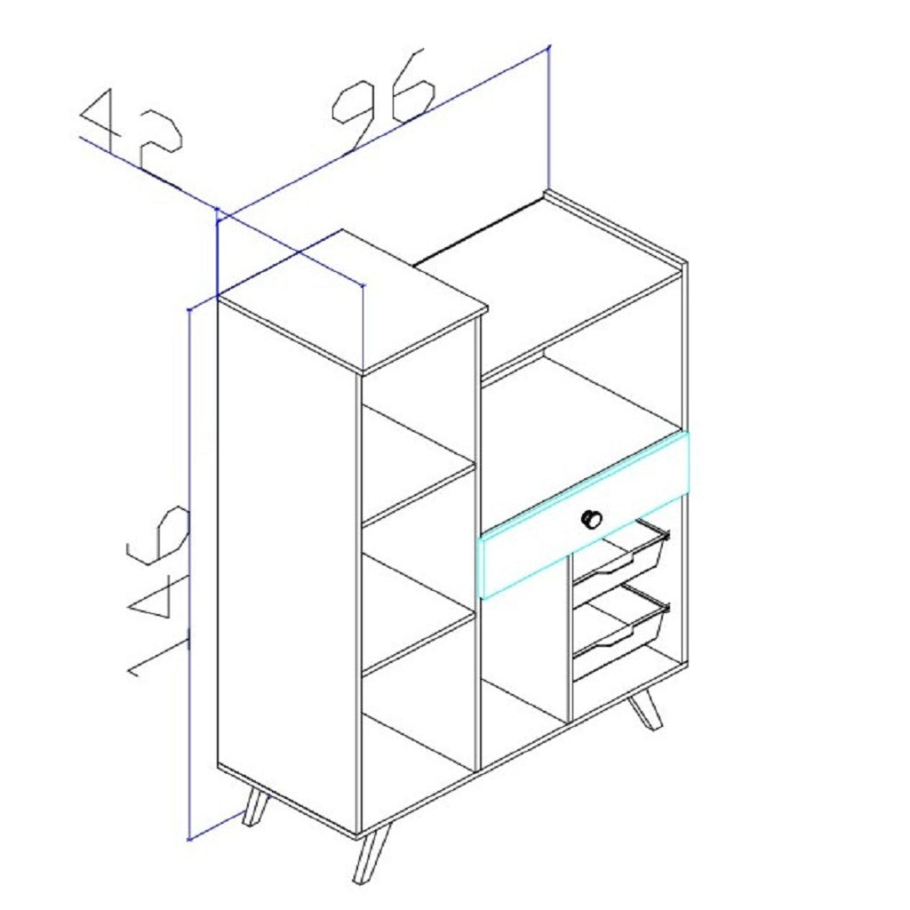Disfruta de su diseño, practicidad y, sobre todo, combínalo con los demás muebles que tiene para ti. Producto armable. Estructura resistente de MDP 15 mm. 1 nicho de almacenamiento para microondas con medidas: 58.2 cm largo x 45.5 cm alto. 1 cajón con correderas metálicas y jaladera circular ABS. 1 puerta abatible con jaladera circular ABS. 2 canastas de plástico para frutas y verduras. 4 patas de plástico que proporcionan un mejor soporte. 1 estante con 3 repisas en su interior. Tapa del mueble ideal y resistente para colocar diversos electrodomésticos. Acabado en pintura UV de larga durabilidad y fácil limpieza. Garantía válida únicamente por defecto de fábrica.