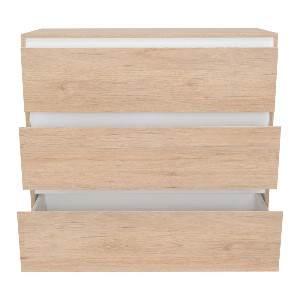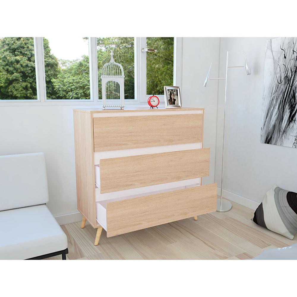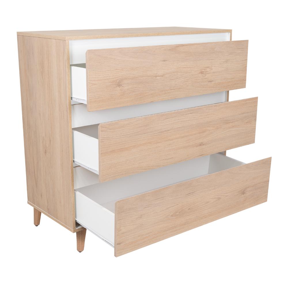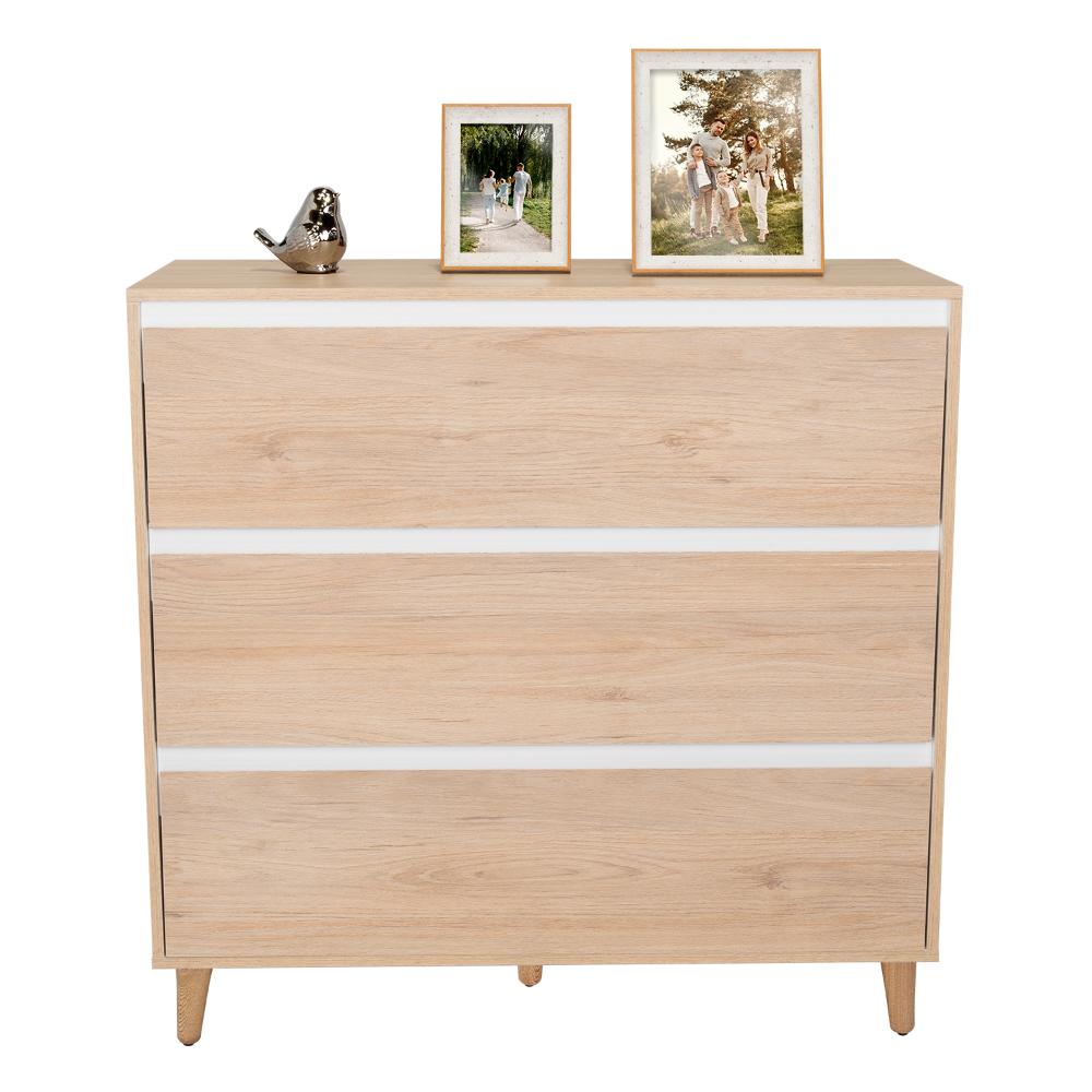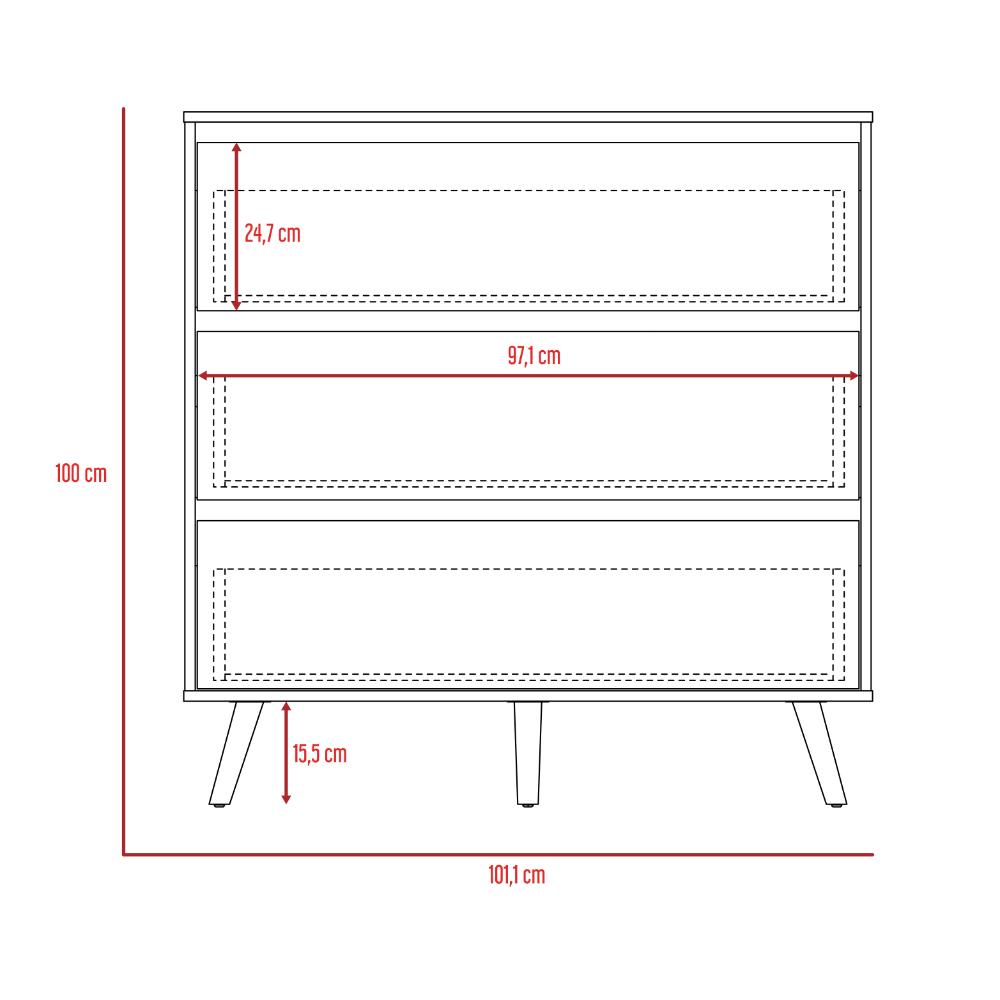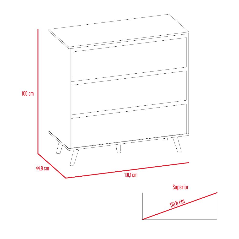 Organizador Durham, Beige y Blanco, con Tres Cajones Amplios y Patas En Madera