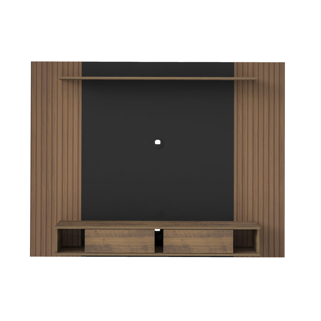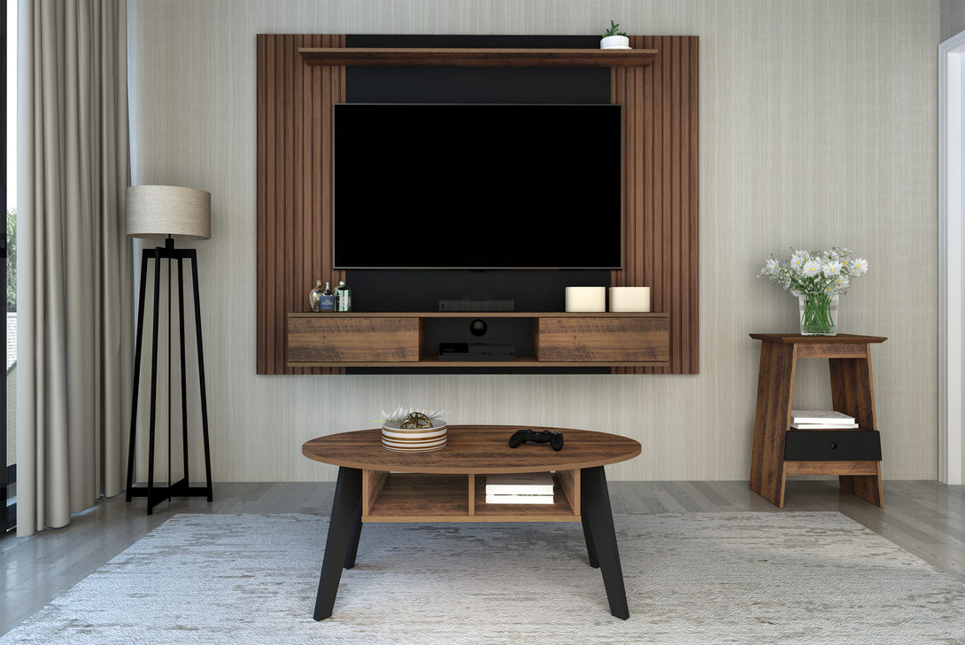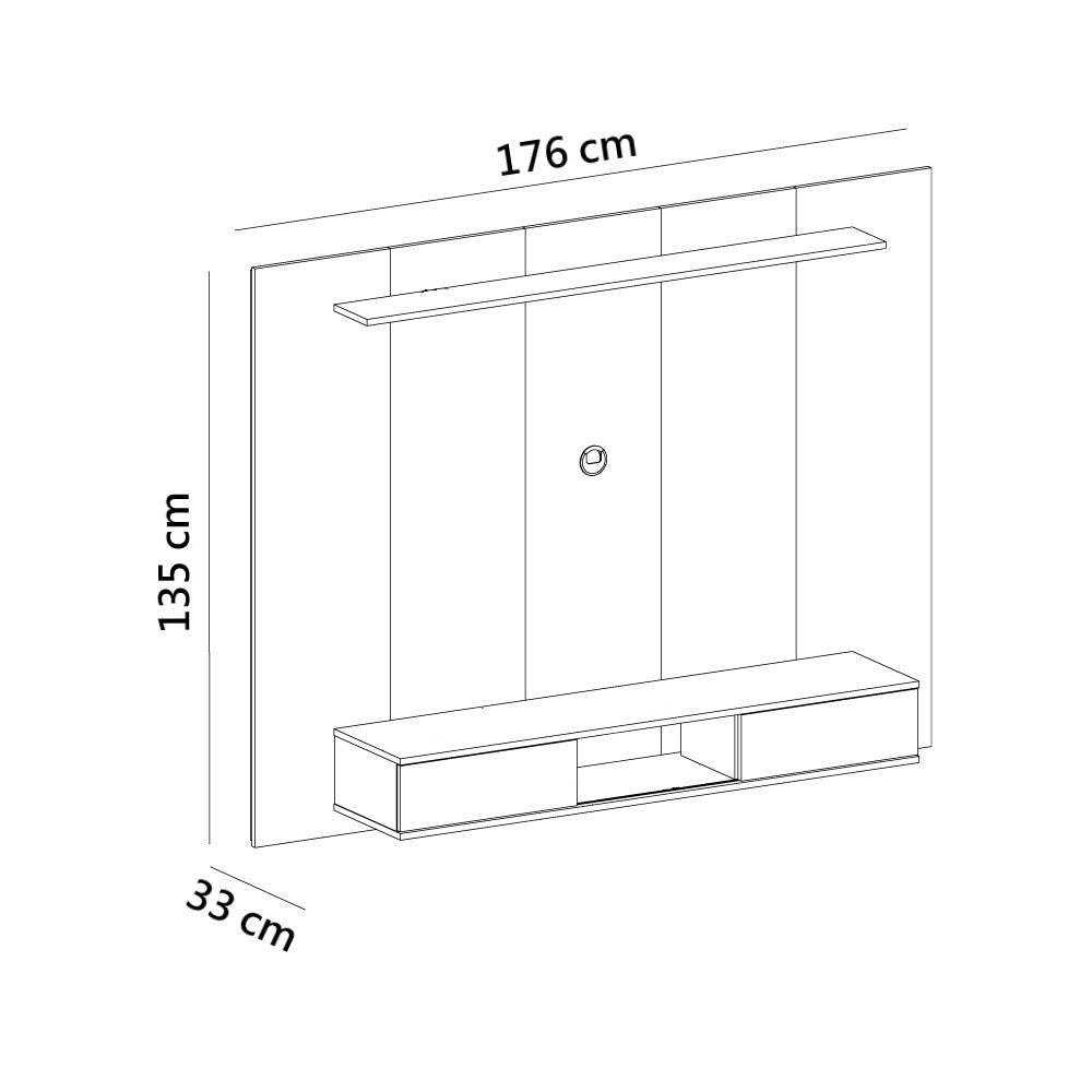 Soporta una televisión de hasta 72 pulgadas. Combinación de 2 colores. 2 nichos de almacenamiento con puertas corredizas. Viene acompañado de soporte y herrajes para fijar la TV. El acabado del mueble está hecho en pintura UV texturizada de larga durabilidad y fácil limpieza. Garantía válida únicamente por defecto de fábrica.