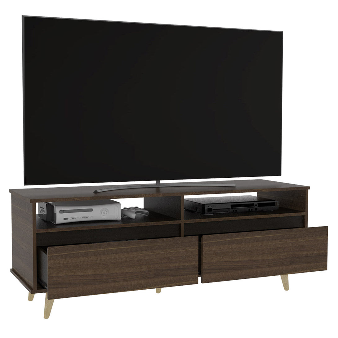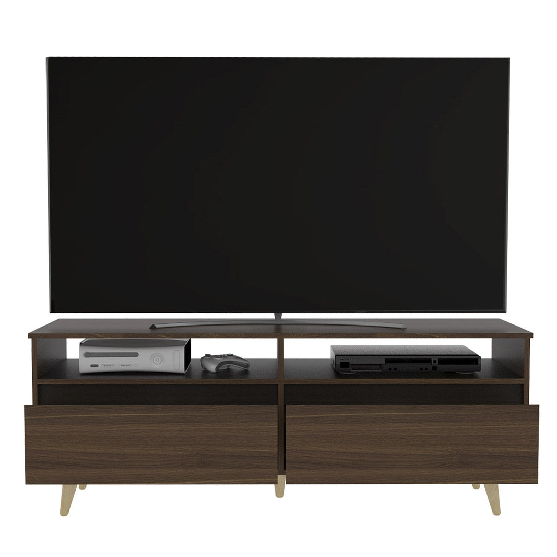 El rack para TV Almeria es la solución perfecta para disfrutar de tus películas y series favoritas. Es ideal para cualquier espacio, ya que cuenta con un diseño moderno y juvenil que se adapta a cualquier decoración. Tiene un diseño moderno y juvenil, con un color caramelo que le da un toque sofisticado y atemporal. Está fabricado en melamina de alta resistencia con un espesor de 15 milímetros, lo que lo hace duradero y resistente. Cuenta con dos amplios cajones, lo que te permite guardar tus dispositivos electrónicos, libros o cualquier otro accesorio. Además, su diseño moderno y juvenil combina a la perfección con la decoración de la sala.