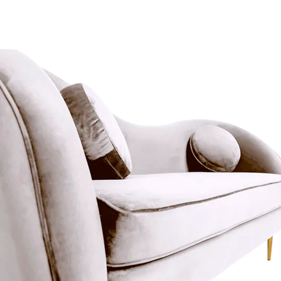 Nuestro sofá de dos plazas destaca por su increíble diseño moderno, que combina líneas curvas y un diseño elegante con un toque contemporáneo. El tapizado en suave terciopelo realza su aspecto lujoso y cómodo, transformando cualquier espacio en un ambiente sofisticado. Las patas doradas aportan un toque de distinción y elevan aún más su estética refinada. El respaldo acolchado está cuidadosamente diseñado para ofrecer una comodidad excepcional, permitiéndote relajarte y disfrutar de momentos placenteros. Además, incluye dos cojines redondos que no solo aportan un detalle decorativo, sino que también ofrecen soporte adicional donde más lo necesitas. Combínalo con nuestros sillones y sofás de 1, 2 y 3 plazas para completar tu espacio. Las patas vienen desmontadas; el montaje es muy sencillo y rápido.