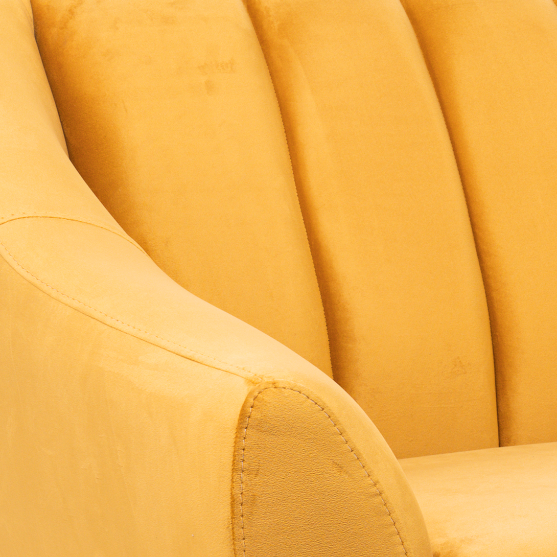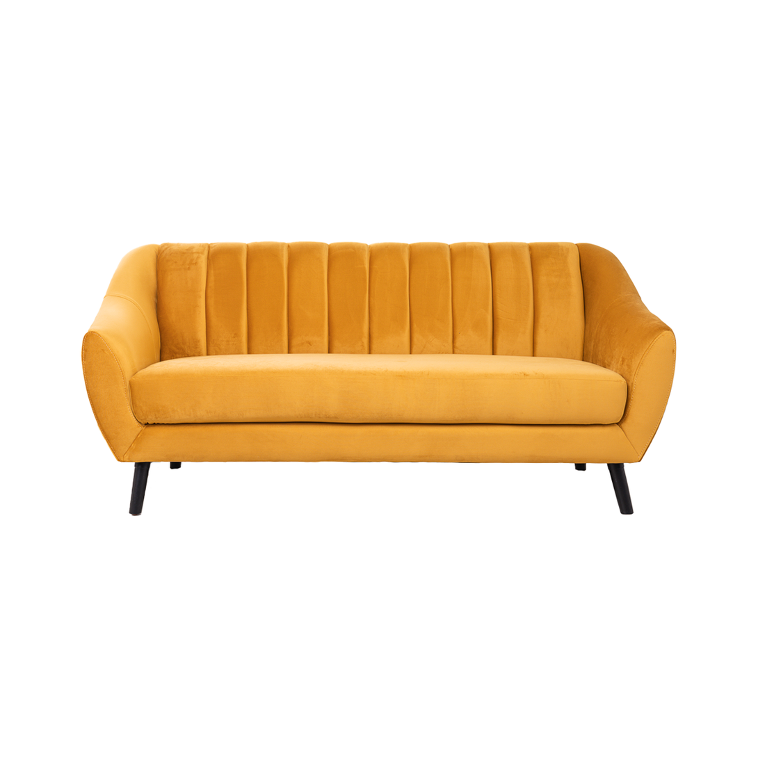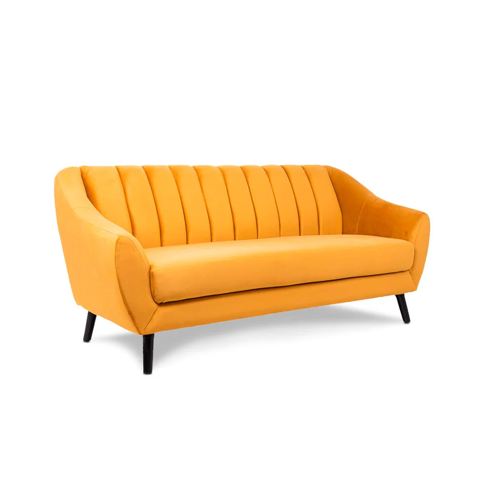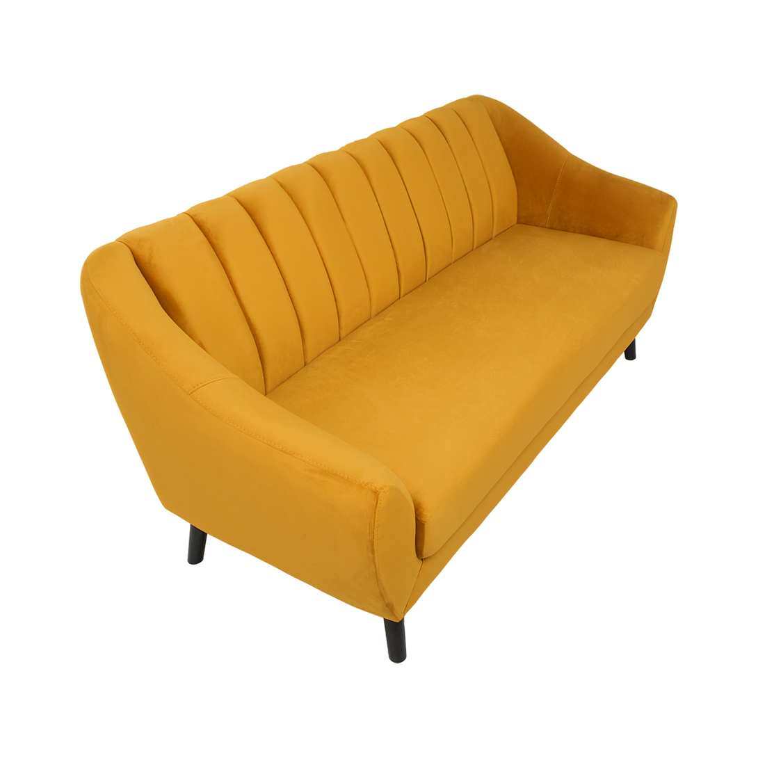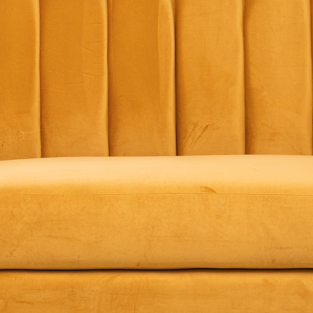 Sofá de 3 Plazas Tapizado en Terciopelo Color Mostaza. Estructura de Madera Sólida