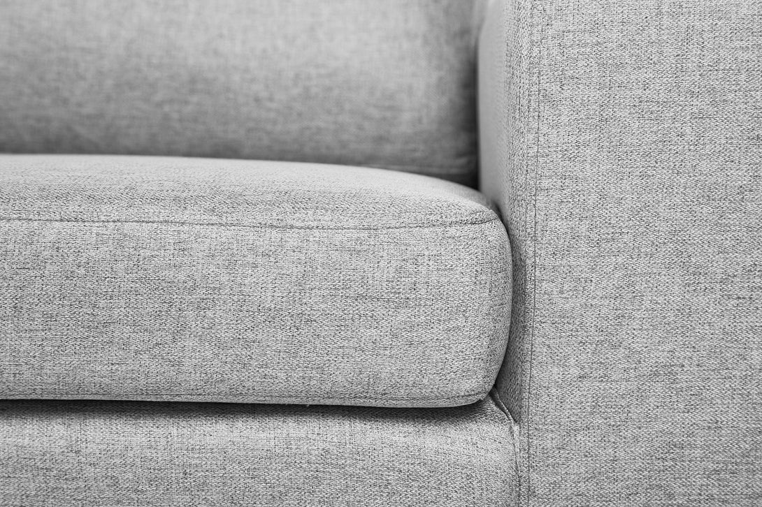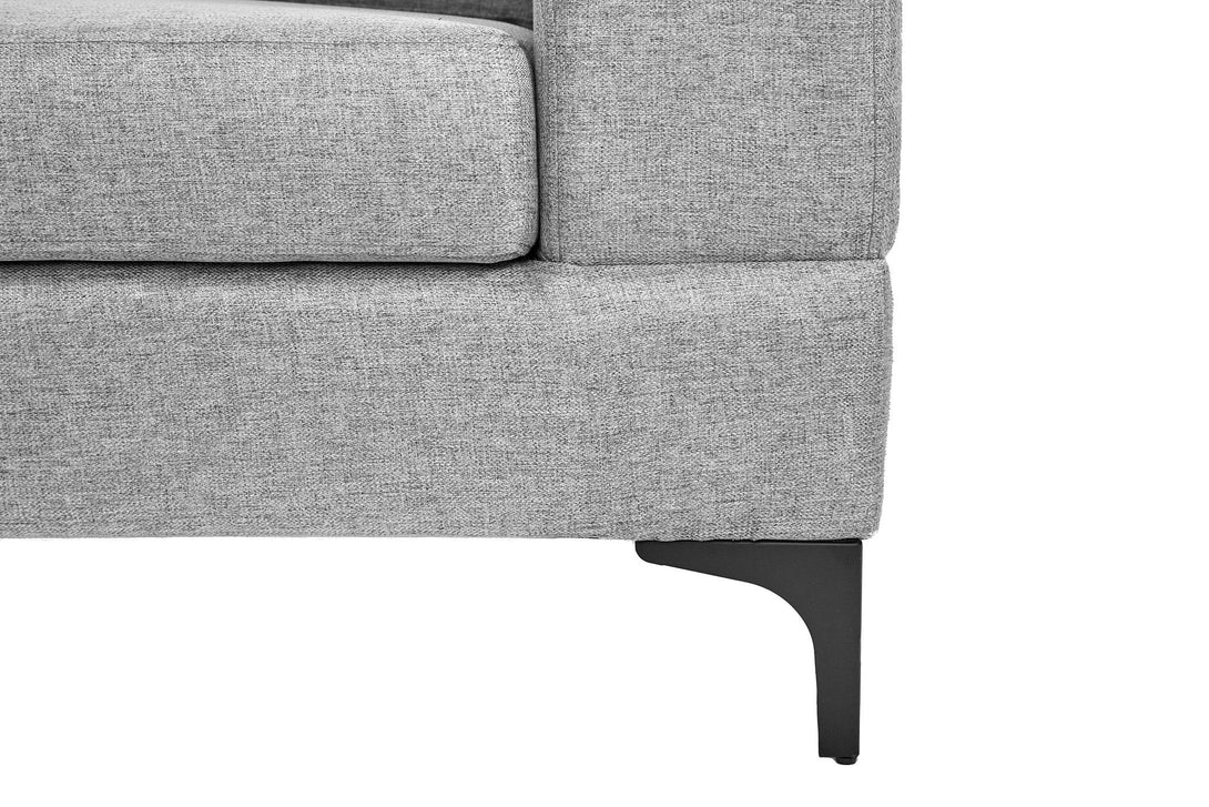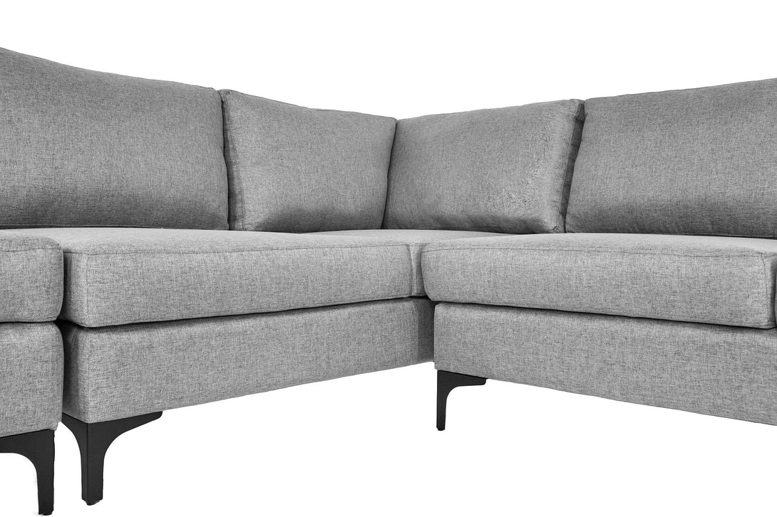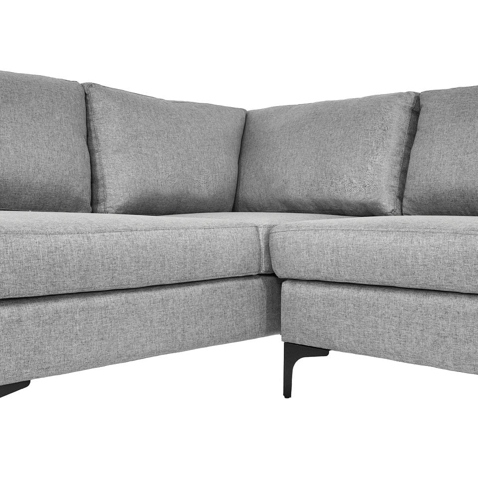 Sofá Escuadra Izquierda con Tapizado Color Gris Claro. Estructura de Madera Sólida y Patas de Acero