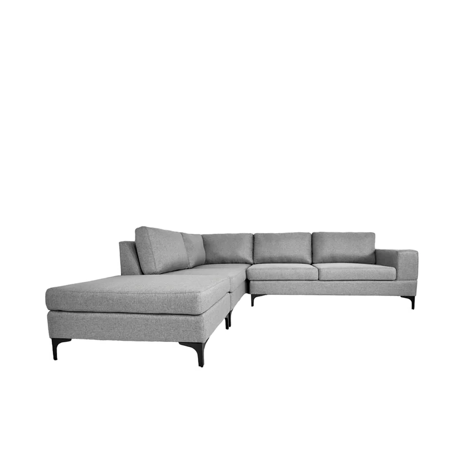 Renueva tu espacio con este sofá esquinero de diseño contemporáneo. Este sofá de tres plazas, con su forma en L y líneas limpias, brinda una comodidad excepcional gracias a sus cojines densamente acolchados y su chaise longue integrado para mayor relajación. Perfecto tanto para interiores modernos como clásicos, esta sala modular actúa como el punto focal ideal para agregar un elemento de elegancia y confort a tu área de estar. Su construcción sólida asegura una larga vida útil, mientras que la tapicería premium ofrece una textura placentera al tacto. No desaproveches la oportunidad de mejorar el ambiente de tu hogar con esta pieza versátil y atractiva. Combínalo con los diferentes sillones y sofás de 1, 2 y 3 plazas que tenemos para ti. Las patas vienen desmontadas; el montaje es muy sencillo y rápido.